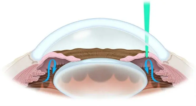 Yag laser iridotomija je metoda izbora za primarni glaukom zatvorenog ugla. U ljudskom oku se kontinuirano stvara tečnost koja se naziva očna vodica, od čije količine zavisi intraokularni pritisak. Očna vodica ima svoj fiziološki put kretnje, od mesta u zadnjoj očnoj komori gde se stvara u strukturi koja se naziva cilijarno telo, do mesta oticanja u prednjoj očnoj komori koje se naziva komorni ugao (slika 1).