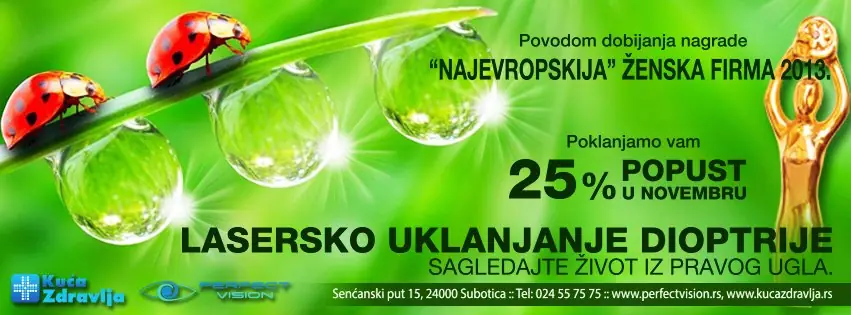 Za sve pacijente koji žele da saznaju nešto više o laserskom uklanjanju dioptrije imaju jedinstvenu priliku u zemlji da učestvuju u radionici “Moje oči – moje pravo da znam” i u prijatnom druženju sa lekarima i ranije operisanim pacijentima, pitaju sve što su ikada želeli da znaju o ovoj intervenciji. Učešće je besplatno i neobavezujuće a sve učesnike očekuju posebne pogodnosti. Više o radionici pročitajte klikom na LINK.
