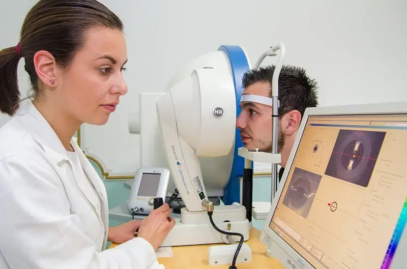 4. Pregled na aparatu kompjuterizovano vidno polje predstavlja jedan od zlatnih standarda prilikom dijagnostike glaukoma. Ovim ispitivanjem u kojem pacijent aktivno učestvuje pod monitoringom medicinskog osoblja dobija uvid u funkcionalno stanje širine vidnog polja koje je u korelaciju sa strukturnim oštećenjem nervnih vlakana od kojih je sastavljen vidni živac.