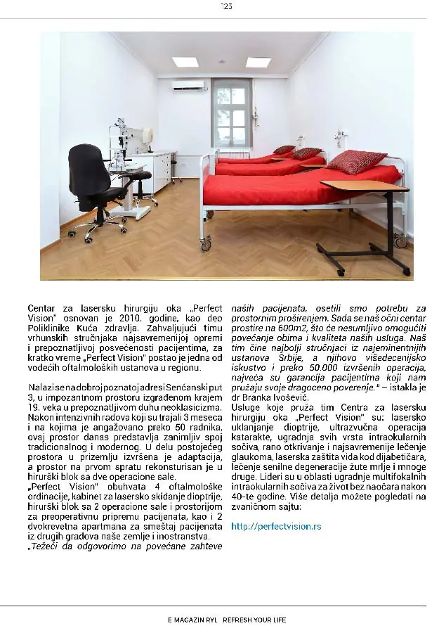 RYL (Refresh Your Life) e-magazin szerkesztősége a magazin novemberi számában „LIMITÁLT KIADÁS” témájú „Perfect Vision” című Lézeres Szemsebészeti Központ új helyiségeit mutatta be, érdekes cikkel és fotókkal.